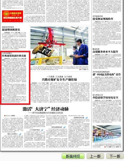 《濟寧日報》報道經(jīng)典集團:經(jīng)典速度鑄就經(jīng)典傳奇
