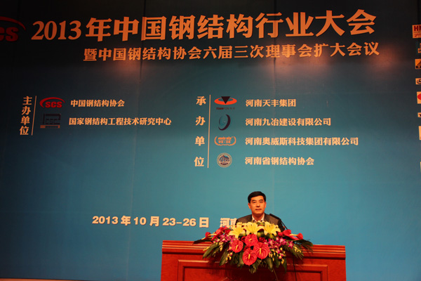 1023-26日,2013年中國(guó)鋼結(jié)構(gòu)行業(yè)大會(huì)暨中國(guó)鋼結(jié)構(gòu)協(xié)會(huì)六屆三次理事會(huì)擴(kuò)大會(huì)議”在河南鄭州黃河迎賓館召開。會(huì)議由中國(guó)鋼結(jié)構(gòu)協(xié)會(huì)、國(guó)家鋼結(jié)構(gòu)工程技術(shù)研究中心主辦;河南鋼結(jié)構(gòu)協(xié)會(huì)單位承辦。會(huì)議邀請(qǐng)了國(guó)務(wù)院國(guó)資委行業(yè)協(xié)會(huì)聯(lián)系辦公室副主任張濤、河南省人大常務(wù)委員會(huì)副主任儲(chǔ)亞平、中國(guó)鋼鐵工業(yè)協(xié)會(huì)常務(wù)副會(huì)長(zhǎng)朱繼民、中國(guó)鋼結(jié)構(gòu)協(xié)會(huì)會(huì)長(zhǎng)(中冶建筑研究總院院長(zhǎng))岳清瑞、常務(wù)副會(huì)長(zhǎng)劉毅、副會(huì)長(zhǎng)賀明玄、秘書長(zhǎng)劉萬忠及副會(huì)長(zhǎng)、常務(wù)理事單位等出席會(huì)議。經(jīng)典集團(tuán)董事長(zhǎng)苗樹文、生產(chǎn)總經(jīng)理王忠策等公司領(lǐng)導(dǎo)參加了此次大會(huì),經(jīng)典集團(tuán)榮獲中國(guó)鋼結(jié)構(gòu)協(xié)會(huì)第六屆理事會(huì)理事單位,苗樹文董事長(zhǎng)為中國(guó)鋼結(jié)構(gòu)協(xié)會(huì)第六屆理事會(huì)理事。