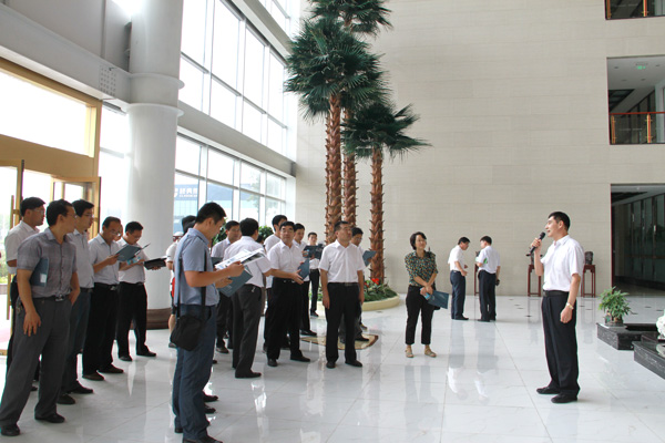 9月21日上午,濟寧市委黨校組織全市秋季黨政培訓班學員50余人來集團公司參觀考察。兗州工業(yè)園區(qū)副主任許振文、經(jīng)典集團董事長苗樹文、工業(yè)園區(qū)經(jīng)濟發(fā)展局、財政局有關(guān)負責人陪同這次活動。