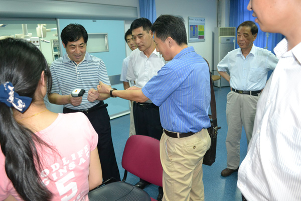 市領(lǐng)導(dǎo)及經(jīng)典集團(tuán)董事長(zhǎng)一行在劉寶林院長(zhǎng)的陪同下參觀醫(yī)療器械研究中心