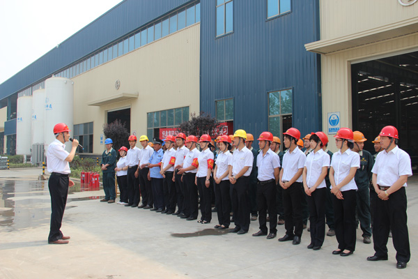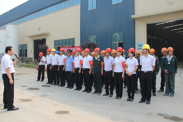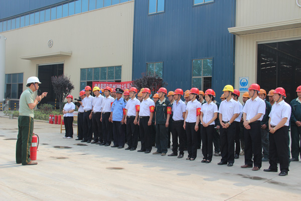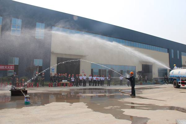 上午九時(shí)演習(xí)準(zhǔn)時(shí)開始,因電線打火引發(fā)火災(zāi),經(jīng)典集團(tuán)西小件區(qū),倉庫內(nèi)有大量油漆,稀料以及大批橡膠制品等,形勢萬分緊急,車間及時(shí)報(bào)警,綜合辦接警后立即與消防大隊(duì)報(bào)警,然后車間員工及后勤各部門員工,按火災(zāi)預(yù)定方案迅速組成指揮部,迅速“搶救人員,疏散物資”,先由4名隊(duì)員接通消防栓,迅速鋪設(shè)水帶,打開高壓水槍滅火,后由4名佩戴防毒面具隊(duì)員,用干粉滅火器滅火(撲滅零星小火),火勢全部撲滅后,指揮員下達(dá)“演習(xí)結(jié)束”命令,護(hù)衛(wèi)隊(duì)清點(diǎn)物資裝備,列隊(duì)點(diǎn)名,兗州消防大隊(duì)房隊(duì)長做了點(diǎn)評(píng),對(duì)我公司的應(yīng)急演習(xí)做了高度評(píng)價(jià)。集團(tuán)公司苗樹文董事長做了演習(xí)總結(jié),杜福生總經(jīng)理做了演習(xí)前動(dòng)員講話,并陪同消防隊(duì)房隊(duì)長參觀了生產(chǎn)車間。